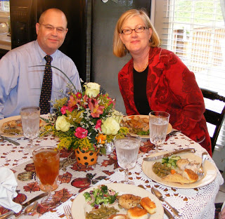 as well as their daughter and son-in-law (our music minister). The beautiful centerpiece was a gracious hostess gift from the Fishers. How thoughtful!