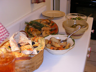 Preheat oven to 400 degrees (to bake this on Sunday I put it in a 300 degree oven when I left for church). Combine lemon zest, juice, oil, garlic, oregano, salt and pepper; set aside. Cut each potato lengthwise into 8 wedges; place in 9 x 13 pan. Add bell pepper, onion, mushroom, and half of the lemon juice mixture; toss to coat. Place chicken on top of vegetables; brush with the remaining lemon juice mixture. Bake 1 hour or until chicken is no longer pink in the center, brushing chicken and vegetables with pan juices after 30 minutes.