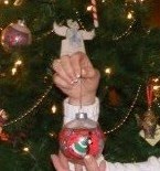 My family has quite a few traditions – all through the year and at Christmastime. If I ever suggested varying from the tradition there would be an uproar in the ranks! One tradition is that my husband and I hang our “First Christmas Together” ornament (pictured) on the tree together and then kiss. While our girls were disgusted with that while they were little, they expected it to happen each year!