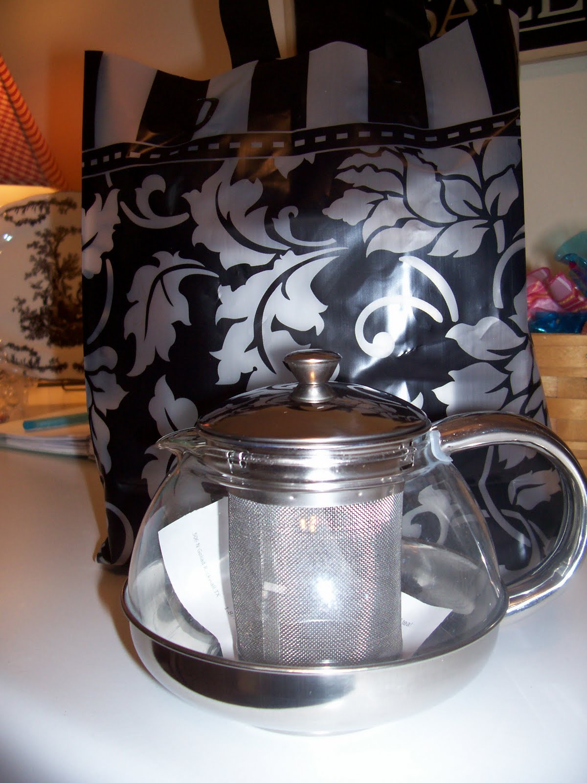 This was a recent gift from a friend – isn’t it cute? It’s a teapot that has the diffuser attached to the lid. You put the hot water in the pot, fill the diffuser with loose tea, then let it steep. You then unscrew the diffuser from the lid and replace to keep it warm. It was purchased at Two Sister’s Tea Room in Kingsport. If you haven’t been there you must go! The food is great, and the atmosphere is better than a day at the spa! One day I’m going to go just for hot tea and dessert!
