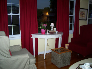 The last picture is the way I turned both wing back chairs in order to create an entry way. It created conversation seating, and with the ottoman between the chairs and topped with a tray, it provides a place for cups or glasses.