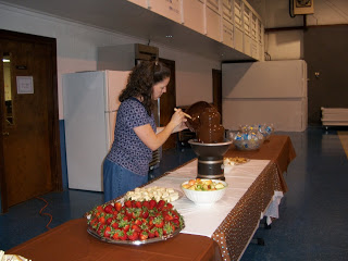We ended the study with a Chocolate Fountain Fellowship! Talk about delicious! We dipped strawberries, angel food cake, bananas, pretzels, apples and marshmallows in that luscious melted chocolate.