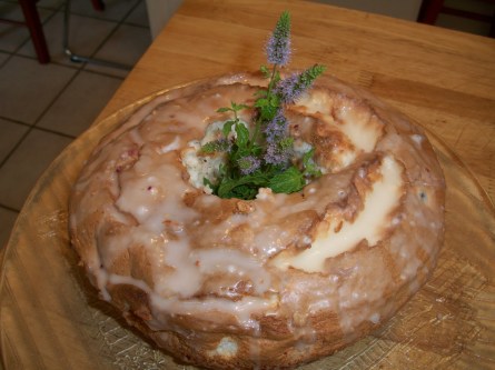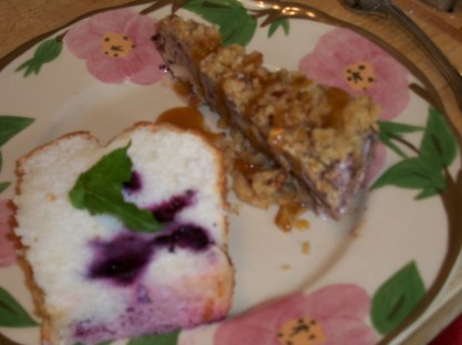 I knew the Sivnksty’s are health conscious, so I made two desserts – a light one and a not-so-light one so they could have a choice. This was my first attempt at making angel food. It was very good, and you can eat a piece and not feel guilty with only .5 grams of fat!