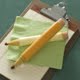 Dab one end of the circle into the mustard, then attach it to the flat end of the cheese stick.