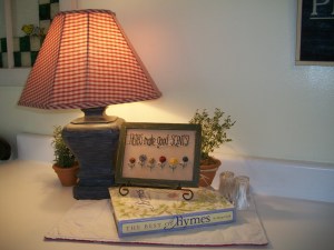I got into a nesting mode Saturday. Maybe it was because Alli’s stuff had been moved out – I don’t know. I emptied the fridge and cleaned it and the freezer. I changed some of the decor in the kitchen. My herbs have done really well this summer, so I made a little display on the counter…