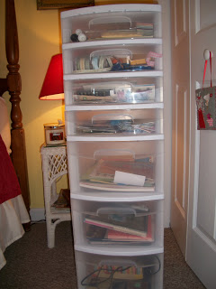 After filling the cart I rolled it into the closet in the spare bedroom. Now when I get ready to use my materials, I can roll the cart to wherever I want to make my mess!