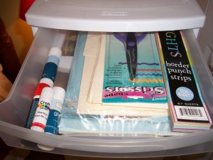It doesn’t take much to make me happy. I recently bought a seven-drawer cart to hold all my scrapbooking/card making supplies.