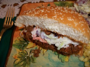 We topped our sandwich with a little cole slaw (the southern way to eat barbecue).