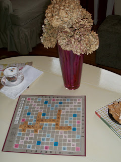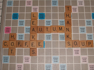 My coffee table holds the Scrabble board. Fall and winter are about being at home on these long nights – playing a game, reading a book while curled up on the couch. The game is ready, with a little start…