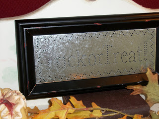 I love this little tin-punched Trick or Treat sign. I found it at the sidewalk sale at Cracker Barrel this summer for $2!