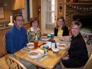 It was “deliciousness” in a bowl! She served it with oatmeal rolls, crackers, cheese and salami. Pudding parfaits with chocolate pudding, pound cake cubes and Cool Whip were for those that had room at the end of meal.