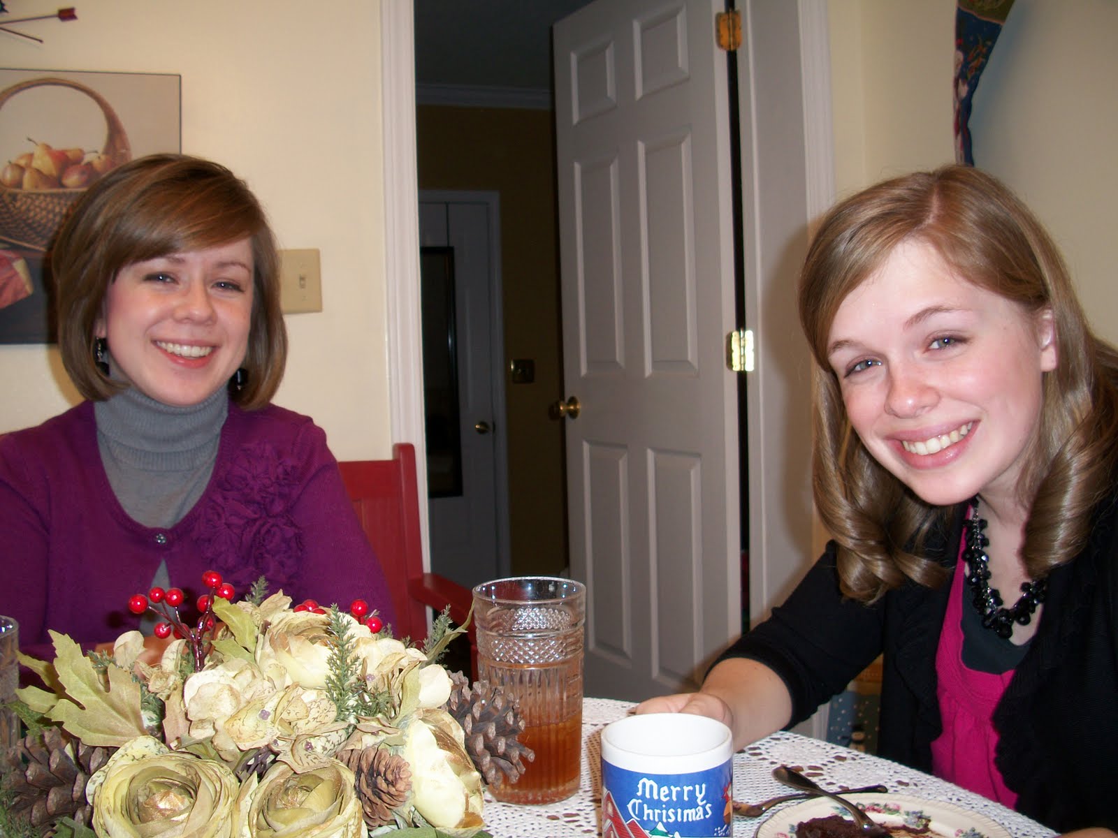 This next picture is so much more the “real” us! I set my camera on my butcher block and set the auto timer on so we could all be in the picture. As we sat and waited for the picture to be taken, my camera was making little “boing” noises to let us know it was about to snap our picture. The noise was so comical sounding and we were have a difficult time keeping our composure. Whitney lost it just as the camera snapped and this is the result…