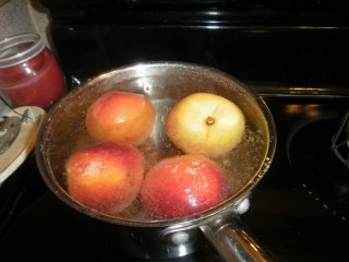 | If you boil the peaches for 30 seconds, the skins will slide right off |