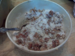 The breads I made are so simple! The Nutty Orange Coffee Cake is made with canned biscuits! I’m learning that canned biscuits are a staple that should always be kept on hand. You can make these Parmesan Knots, or you could deep fry them and roll in sugar for the tastiest homemade donuts. Or you could whip this Nutty Orange Bread together! I got the recipe from a 1995 Southern Living Cookbook. I have made this many times for Christmas brunch. Here’s what you’ll need: