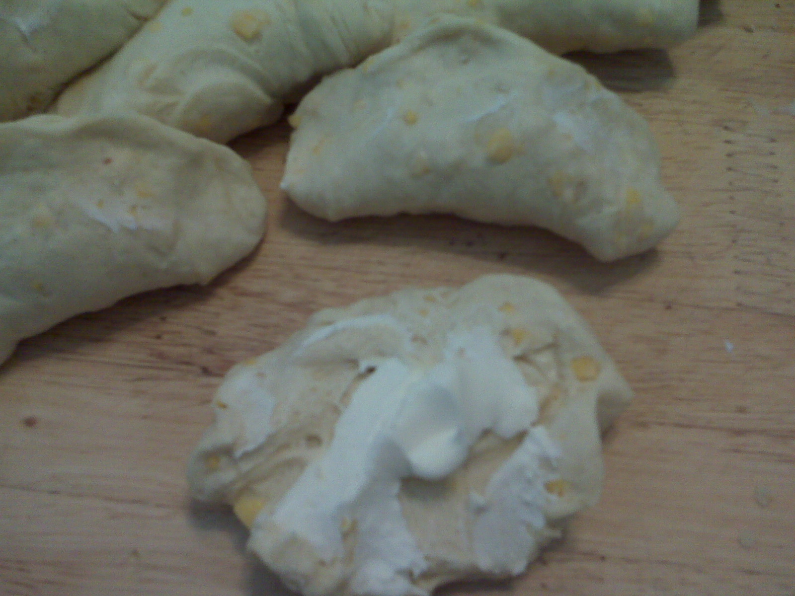 - Place about 1 tsp cream cheese on half of each biscuit; fold biscuit over cheese, pressing edges to seal.