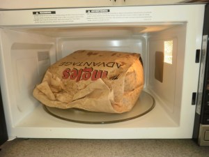 Place 3-4 quarts popped popcorn in a brown grocery bag. Pour syrup over corn. Close bag and shake. Cook in bag on high for 1-1 1/2 minutes. Shake and cook another 1 – 1/2 minutes. You may need to cook another 1 – 1 1/2 minutes. Pour into a pan and cool. Be sure to shake part way through or popcorn will burn!