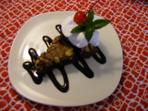 Okay, you’ve read through the other recipes; it’s time to introduce you to the most simple and yummy Fudge Pie! I’ve had the cookbook this recipe was in forever, and had never tried this until Saturday. Wow. This recipe will be my new go-to dessert when I need something made up very quickly! It mixes up in one pan in under 5 minutes – I’m not kidding. It bakes for 25 minutes. I worried that I had over baked it, but the inside was nice and gooey – like fudge! Yes, please.