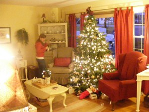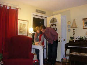 Christmas celebration at The Cunningham’s started the week before Christmas. We celebrated early with Alli before she left for Antigua. Here she is getting dishes for the table from the china cabinet…