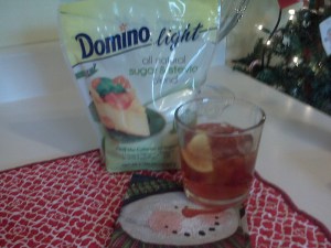 So, in an attempt to improve my iced tea, I recently tried a product I hadn’t seen before – Domino Light. It’s half real sugar and half Stevia. It has half the calories of real sugar and it doesn’t take as much to sweeten as real sugar would. I used about half a cup in a half gallon of tea. It tastes like “the real thing” ladies and gentlemen! Yum! It is expensive, but I had a coupon, and like I said, it doesn’t take as much as regular sugar. I’m going to save it just for iced tea.