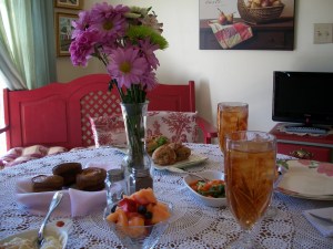 I served the chicken with twice baked mashed potatoes, frozen veggies, popovers, and fresh fruit.