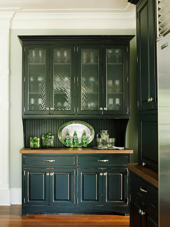 | Love the frosted glass. Keeping the cabinets “perfect” wouldn’t be as crucial as clear glass. I also love the black paint! |