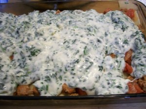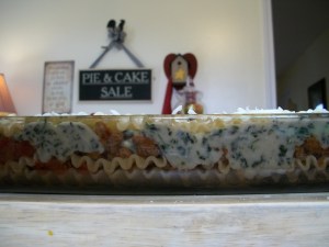 That laundry bag also brings in a Sunday dinner request, and yesterday’s request was for Spinach Lasagna. I’m really glad, because not only is lasagna a great do-ahead dish, this recipe is also so very good! Making this ahead of time on a busy retreat weekend was really a blessing. All I had to do on Sunday morning was make up the salad and set the table!