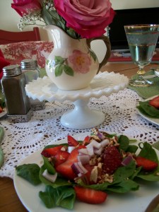 When the Vinaigrette hits the strawberries in this salad it breaks them down and makes them sugary and mindful of sweet summertime! This salad tastes as good as it looks!