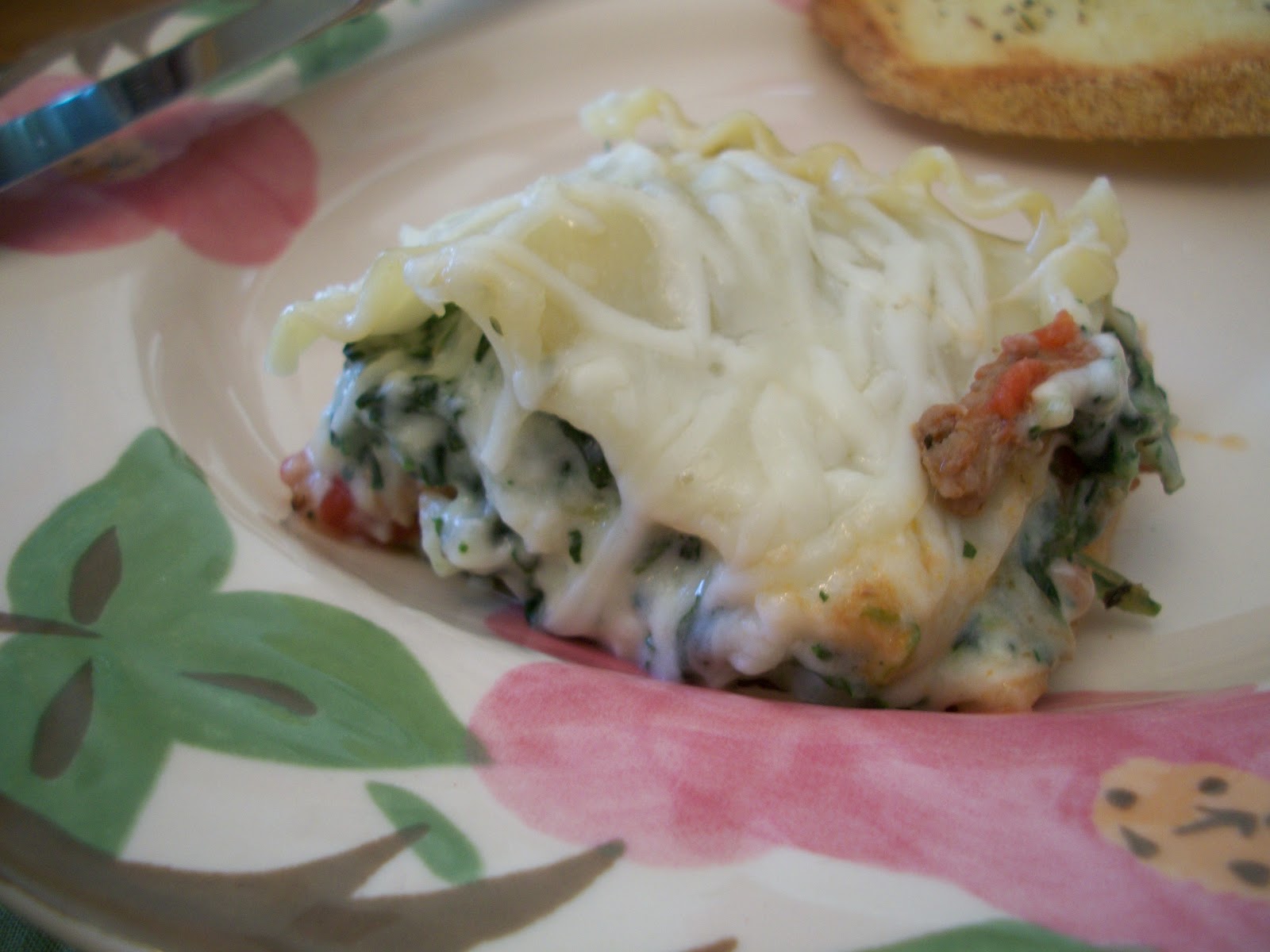 That laundry bag also brings in a Sunday dinner request, and yesterday’s request was for Spinach Lasagna. I’m really glad, because not only is lasagna a great do-ahead dish, this recipe is also so very good! Making this ahead of time on a busy retreat weekend was really a blessing. All I had to do on Sunday morning was make up the salad and set the table!