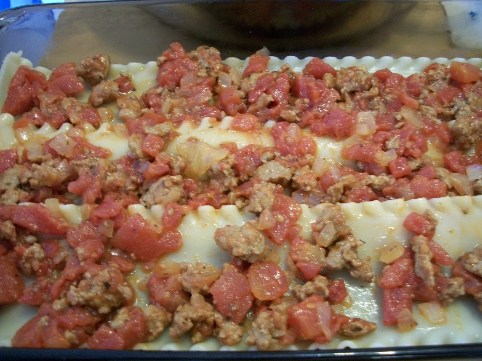 I made a couple of changes in the recipe this time, using Turkey sausage in place of the ground beef and 2% milk insead of whole milk.