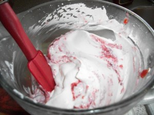 Whip up heavy whipping cream with about 1/3 Cup powdered sugar. Whip until soft peaks form. Mash up strawberries or raspberries, add to whipped cream.