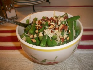 I have to share another new recipe I made on Saturday for a great side dish. This is a Green Bean Salad. You know that we LOVE Southern style green beans, which means they’re cooked to death, but this recipe uses fresh green beans, but only requires you cook them for 3 minutes! It is a delicious change and a great salad. My husband cooked Turkey Burgers on the grill and I made this to go along with them. It was a great accompaniment to that meal!