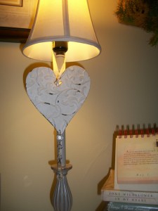 | A pretty accent to my desk lamp. There’s a little glass prism hanging at the bottom of the heart. |