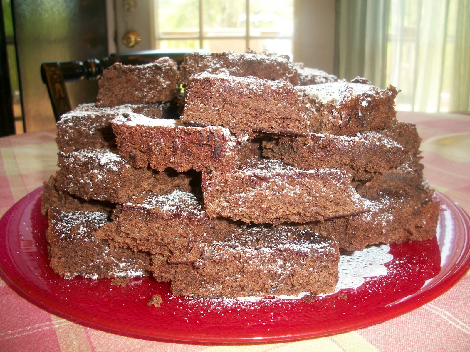 Bake at 350 degrees or ’til brown and set. Cool. Sprinkle with 1/4 C powdered sugar and cut into bars.