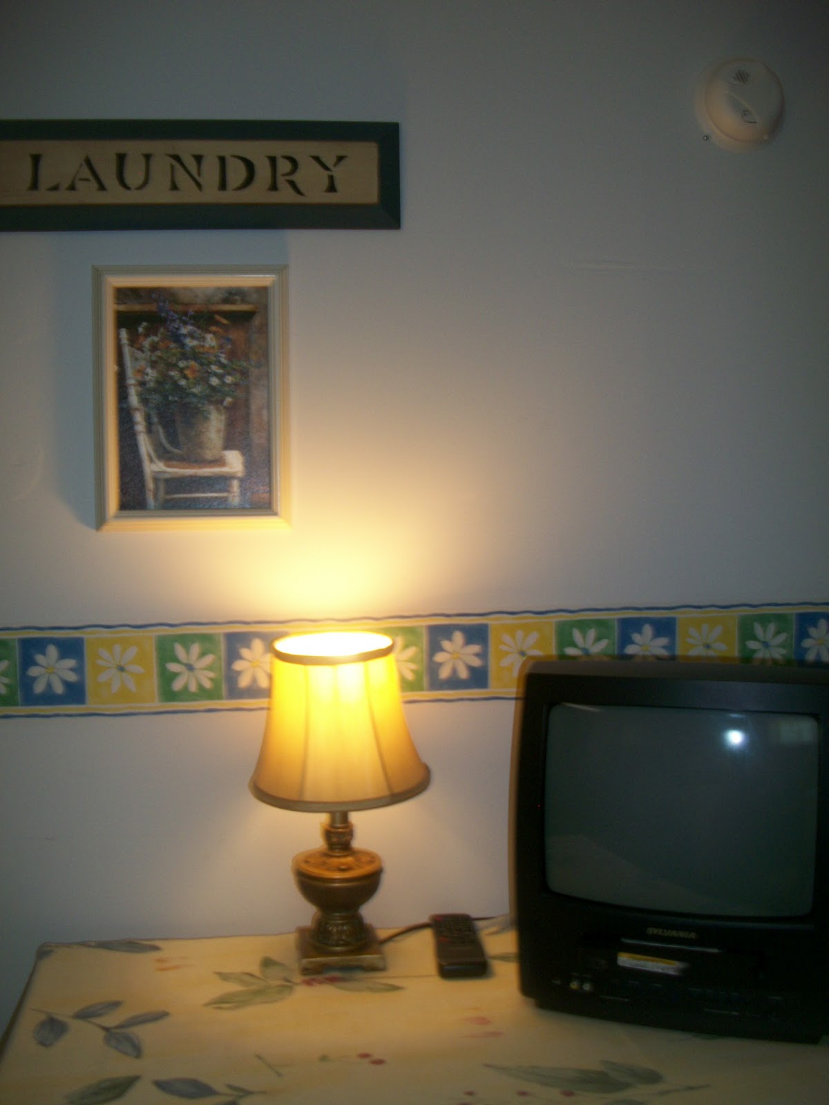 I got the bright idea to put that old set in the laundry room on my laundry folding table. I have an old set that has a video player in it and I have lots of shows like I Love Lucy and Little House on the Prairie that we recorded years ago, so there’s no worry that it isn’t hooked up to cable. When I go down to iron or fold a load, I enjoy watching even part of an episode of a recorded show. Yeah, it has definitely refreshed my laundry room and my time spent down there!