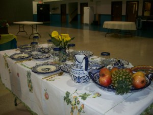 I’m sorry to say I missed getting a picture of one of the tables. Sorry Bev! One friend (just for a joke) set a themed Boones Creek Bible Table. She placed all paper products for the plates, cups and napkins, she added two bulletins from last Sunday, as well as peppermint candies to the middle of the table! It was proof that anyone can set a themed table! She gave us all a good laugh…as she often does!