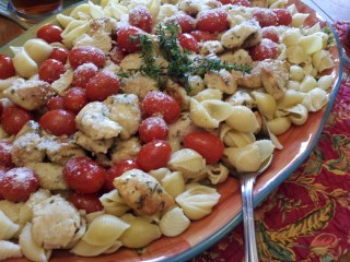 Spaghetti in Garlic Gravy with Herbs and Lemon Marinated Chicken and Cherry Tomatoes