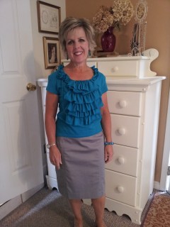 Not sure why the color looks so different in this picture, but it is the same shirt. It’s really comfy…and it’s my favorite color. I think I’ll be wearing this a lot this summer. And I have plans to make some more! This was a really fun project. You really should try it even if you have minimal sewing skills. It’s not difficult!