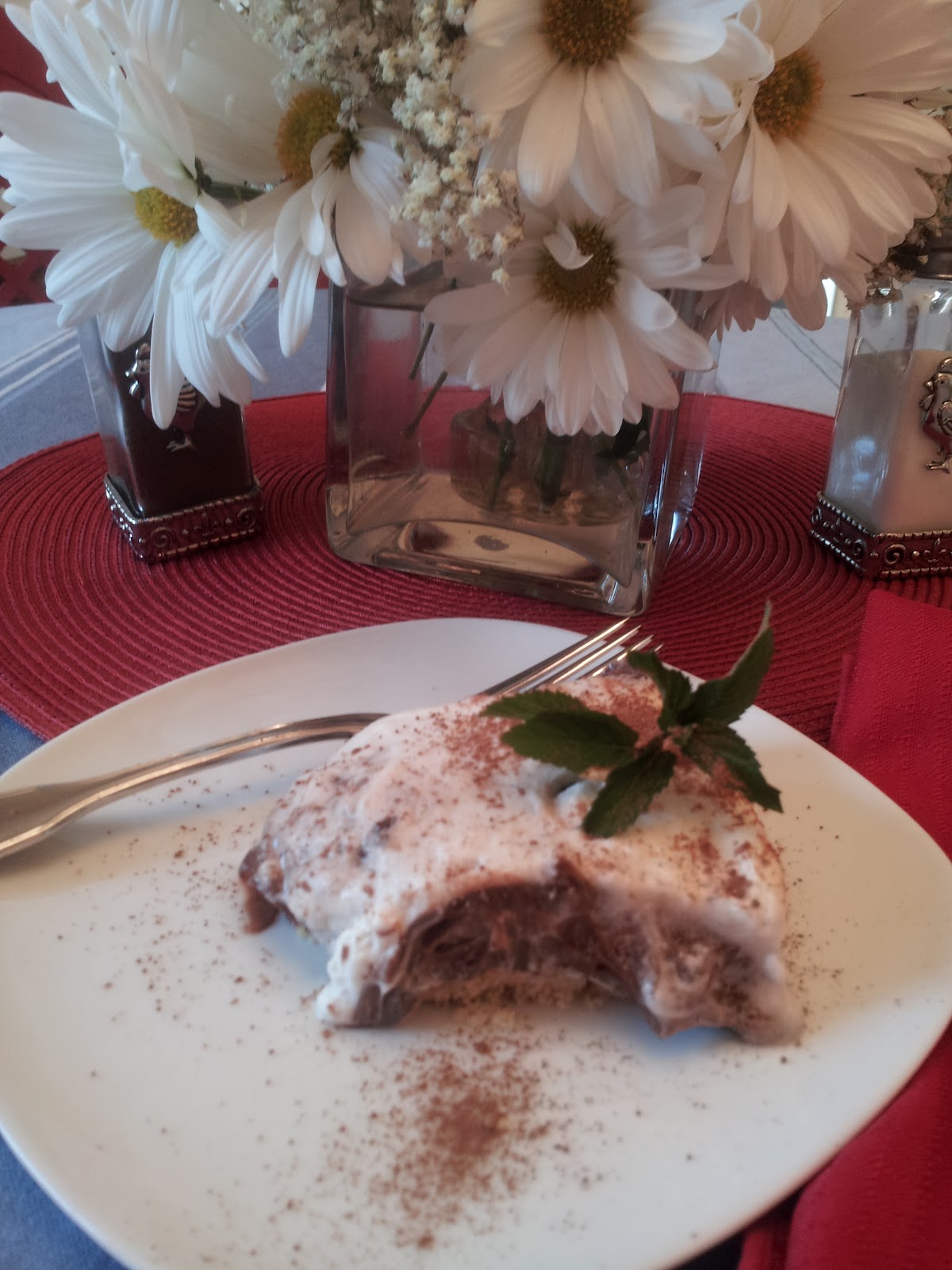 Creamy Chocolate Dessert was from Cooking Light’s site.  It’s a lightened version of what I used to call Four Layer Dessert that you can make with chocolate or lemon pudding.  It’s a great cool dessert for a hot summer day!