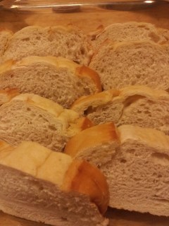 Layer 1/2 loaf of thickly sliced French bread in dish.