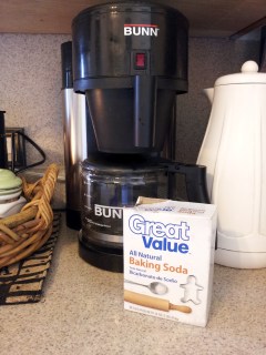 Freshen up your coffee pot and/or tea pitcher with some baking soda and then sit back and enjoy the sparkle – and the pure coffee flavor!
