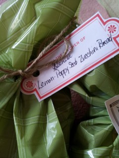 Each recipe makes 3 small loaves – 3″x5″ – perfect for giving away as little thank you’s. I wrapped up several – some for the folks that had shared their garden with me, and another for a friend who had been a blessing last week. My favorite way to show my appreciation is a gift from my kitchen. It’s just a little loaf, but it lets folks know that I am grateful for their kindness.