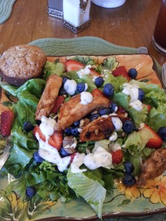 I got so hungry for that salad this week, and when I looked in my fridge, I realized I had almost everything on hand that they put in that dish, so I decided to recreate it for our evening meal. It was so good and we didn’t even have to leave home! With all the good fruits and grilled chicken, the meal was refreshing, and making it at home refreshed my pocketbook! Want to try it?