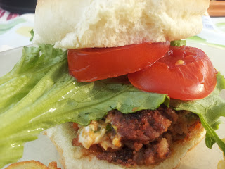 We grilled out recently and made hamburgers, but not just any hamburger. These were Herb & Cheese Stuffed Burgers. The pictures posted today came from my plate. It tasted as lip-smacking as it looks! I saved this recipe to share with you today so you could have a super Labor Day menu to cook on your grill. (Can you believe that’s right around the corner?!) I found this recipe clipped in my file from a Taste of Home Magazine. One of my family members declared this hamburger to be “the best she’d ever eaten!” I think I may have to agree. It didn’t need ketchup, mustard or mayo. The tomato and lettuce were a lovely addition to all the great flavors in this delicious burger. Here’s the recipe: