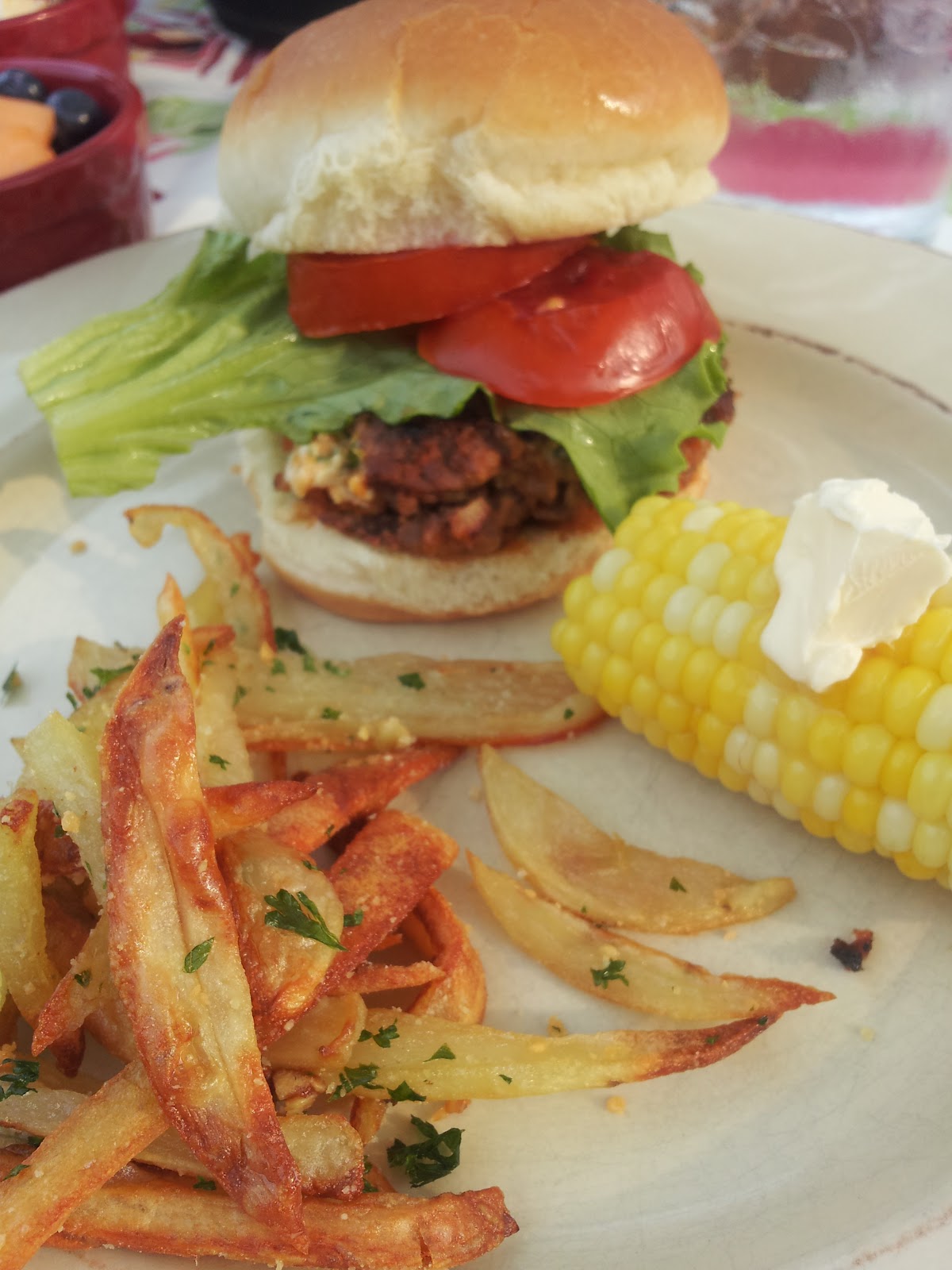 To accompany the burger, Alli made Garlic Fries from Cooking Light. Hello deliciousness! These are amazing. Because they’re baked, not fried, they are much healthier…if you can keep from eating the whole pan (good luck!).