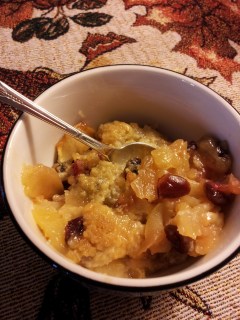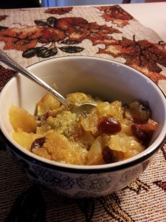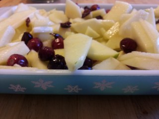 Another new recipe I tried this week was a quick and light dessert – Cranberry and Apple Crumble – from Cooking Light. Oh, my! This was so good, and only 211 calories and 6 gms of fat per serving!