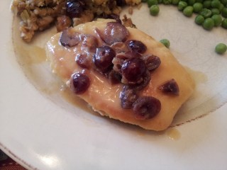 One new dish I made for dinner is – Cranberry Chicken. It’s one I pinned on Pinterest – along with a bunch more ideas of what to do with boneless chicken breasts. The great thing is that it cooks up very quickly. It was nice and moist since it finishes cooking in the sauce.