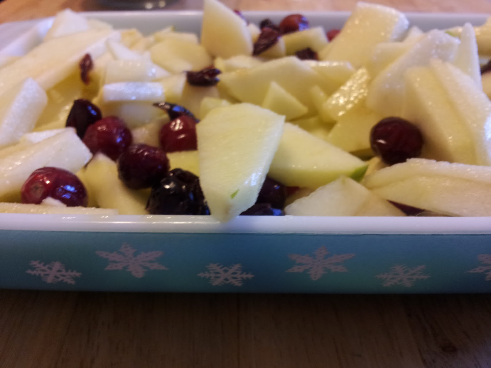 Another new recipe I tried this week was a quick and light dessert – Cranberry and Apple Crumble – from Cooking Light. Oh, my! This was so good, and only 211 calories and 6 gms of fat per serving!