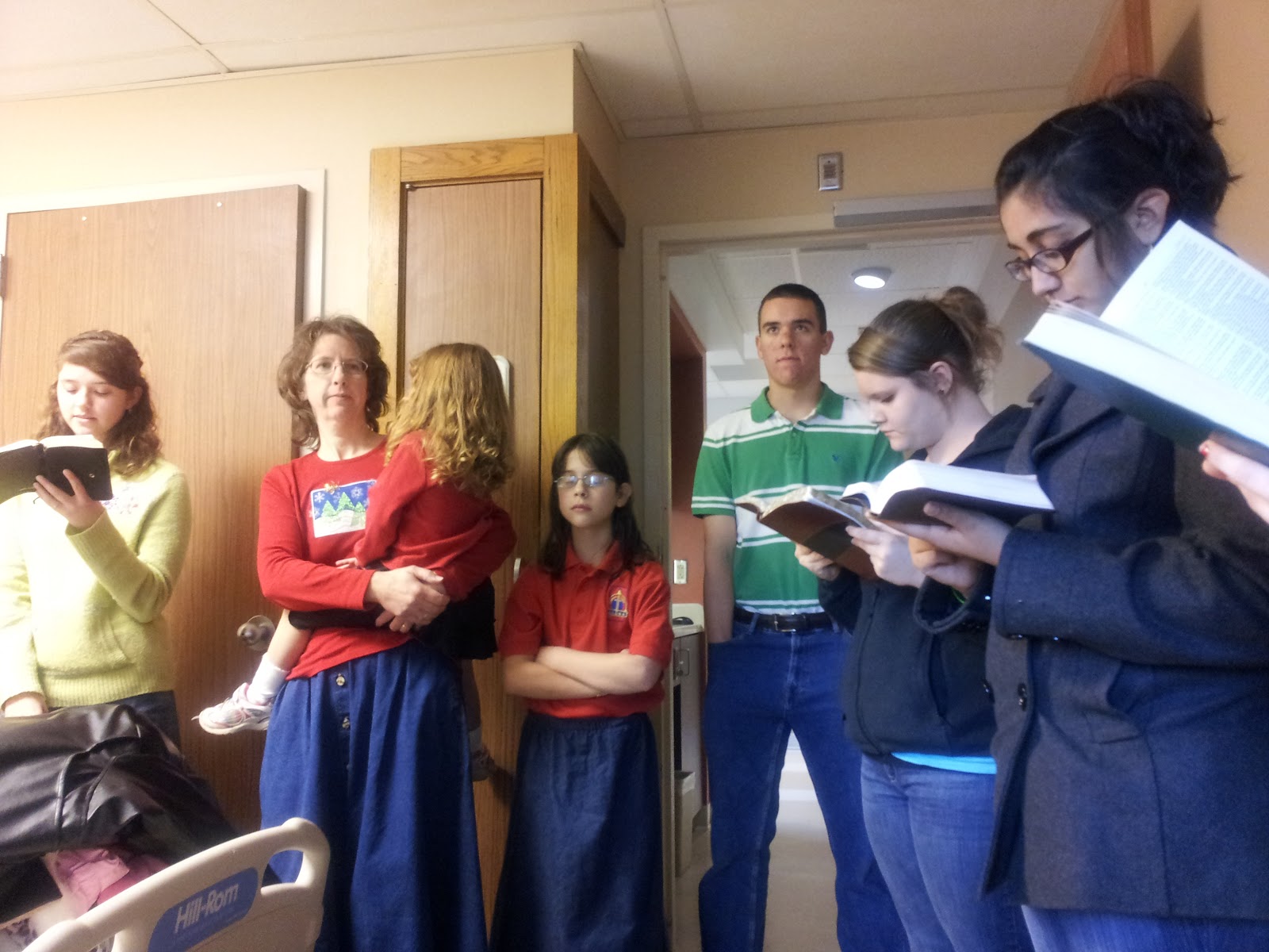 Here is part of the group that came from our church to read, sing and play for my mother-in-law: