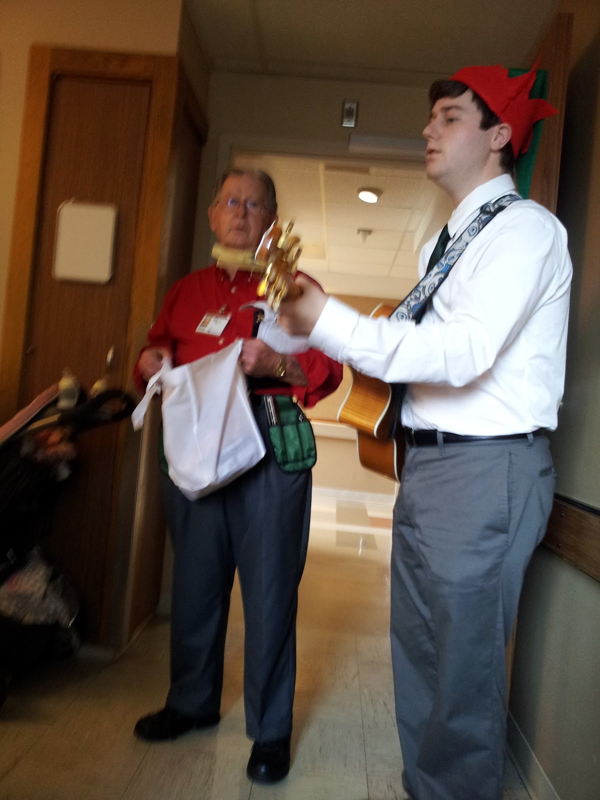 These gentlemen are strangers to us, but they came with guitar and harmonica (and a bag of treats) to sing and brighten the day of the hospital residents: