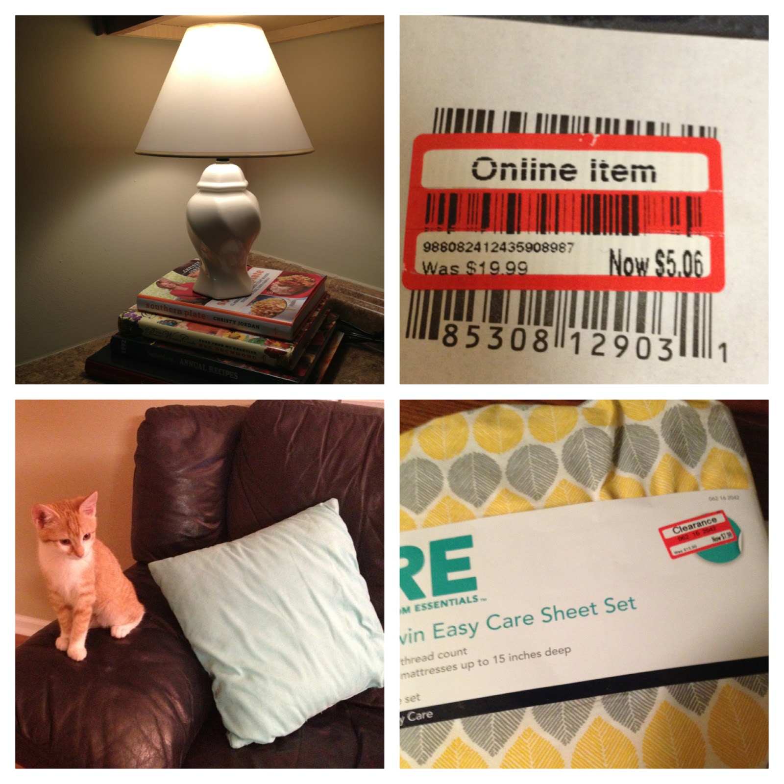• Top Left: 2 matching lamps, “online items” meaning they are only sold online, but were returned to the store. Since they don’t belong in the store, Target marks online items WAY down. I got those lamps for $5 each (see tag on the top right).
